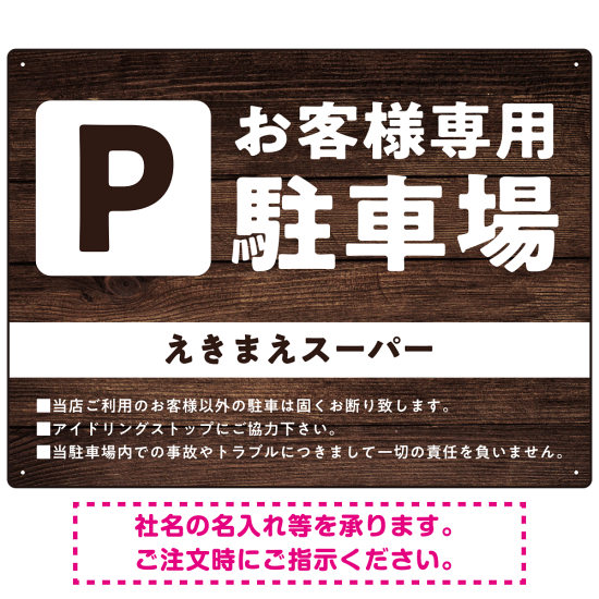 落ち着いた雰囲気のある木目風デザインの駐車場向けデザインプレート看板