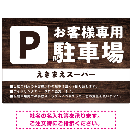 落ち着いた雰囲気のある木目風デザインの駐車場向けデザインプレート看板