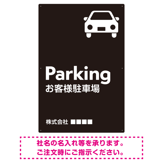 - 「Parking」「お客様駐車場」の表記がはっきり読みやすく、遠くからでも視認性に優れています。