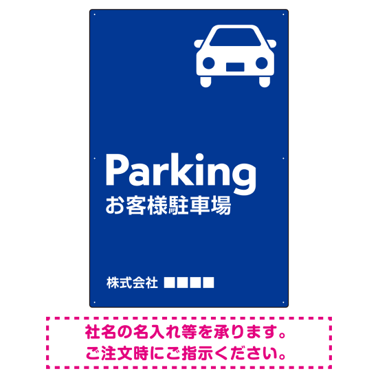 - 「Parking」「お客様駐車場」の表記がはっきり読みやすく、遠くからでも視認性に優れています。