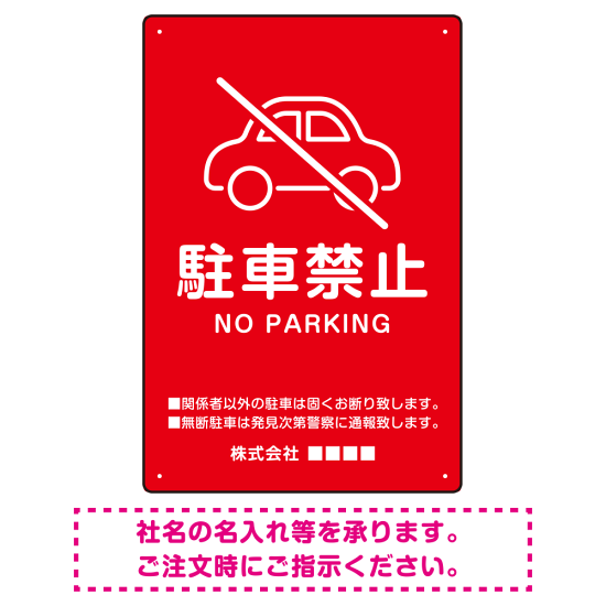 商品説明:クルマアイコンで伝える上品な駐車禁止デザイン 駐車場向けデザインプレート看板 レッド W300×H450 アルミ複合板 (SP-SMD751B-45x30A)