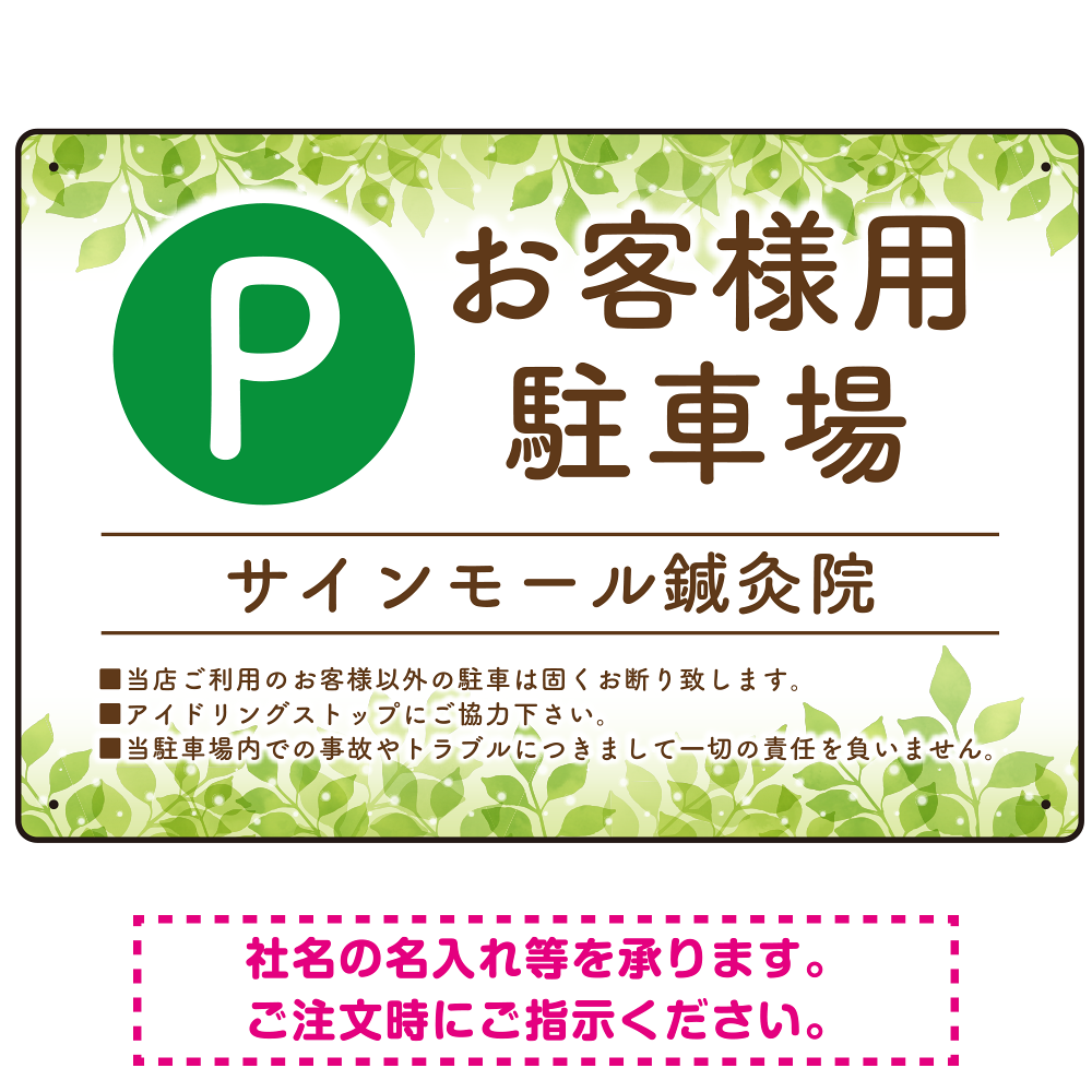 ナチュラルな緑の葉がやさしい印象を与えるデザイン 駐車場向けデザインプレート看板 W450×H300 エコユニボード(SP-SMD754-45x30U)