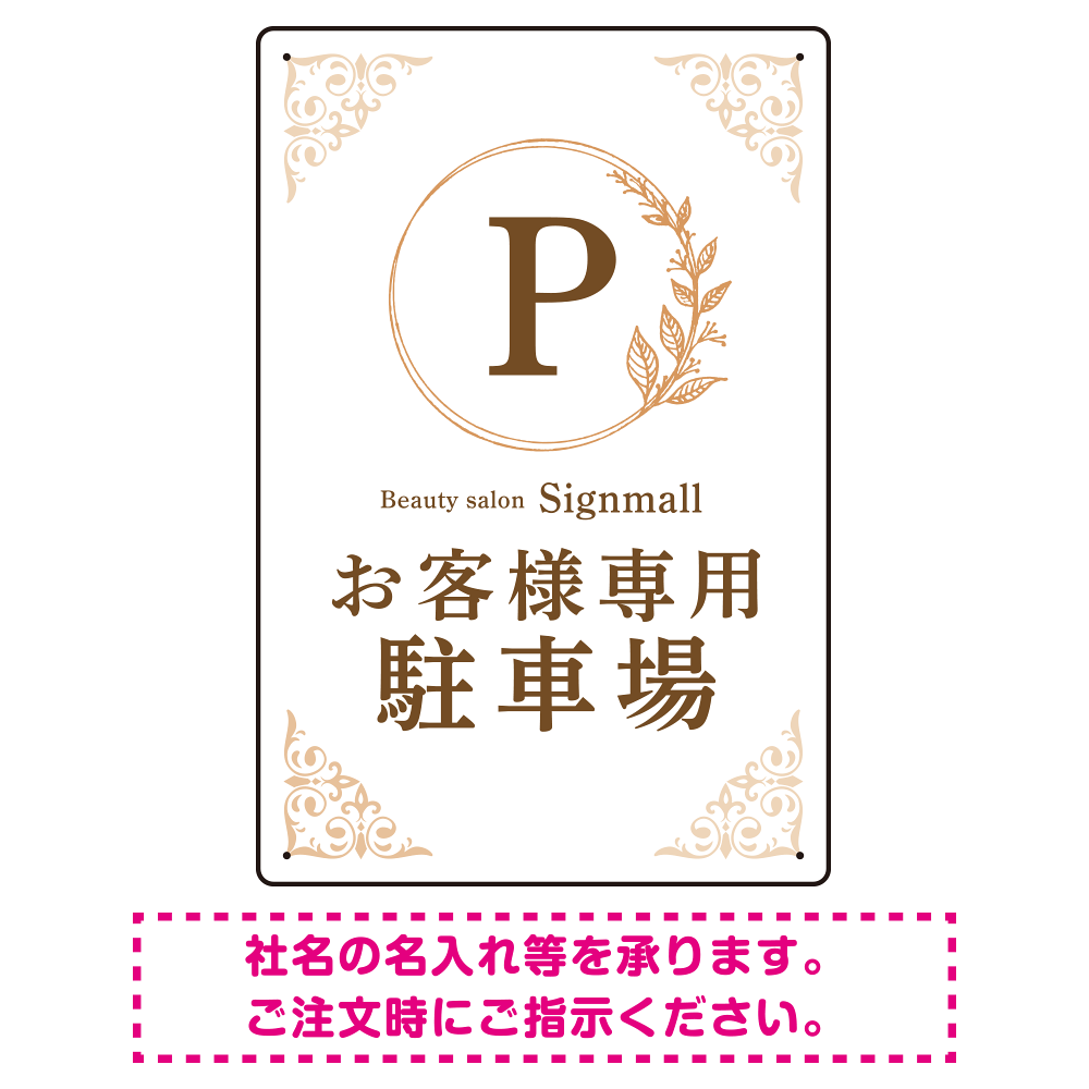ゴールド装飾が目を引くクラシカルデザイン 駐車場向けデザインプレート看板 ホワイト(タテ) W450×H300 エコユニボード(SP-SMD757B-45x30U)