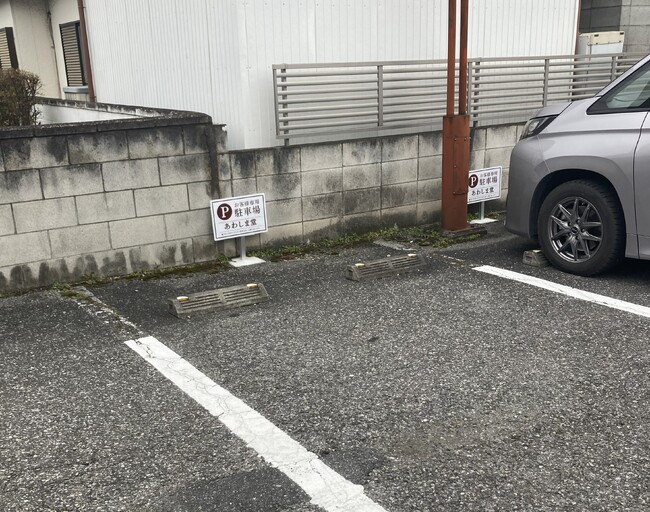 - 木目を活かした背景に、視認性の高い「P」マークと和文フォントを組み合わせたデザインです。