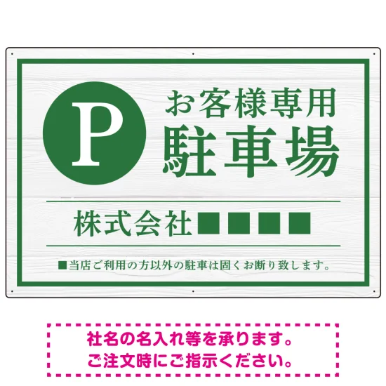 上品な木目調が映えるデザイン 駐車場向けデザインプレート看板 グリーン W900×H600 アルミ複合板(SP-SMD759B-90x60A) の商品詳細