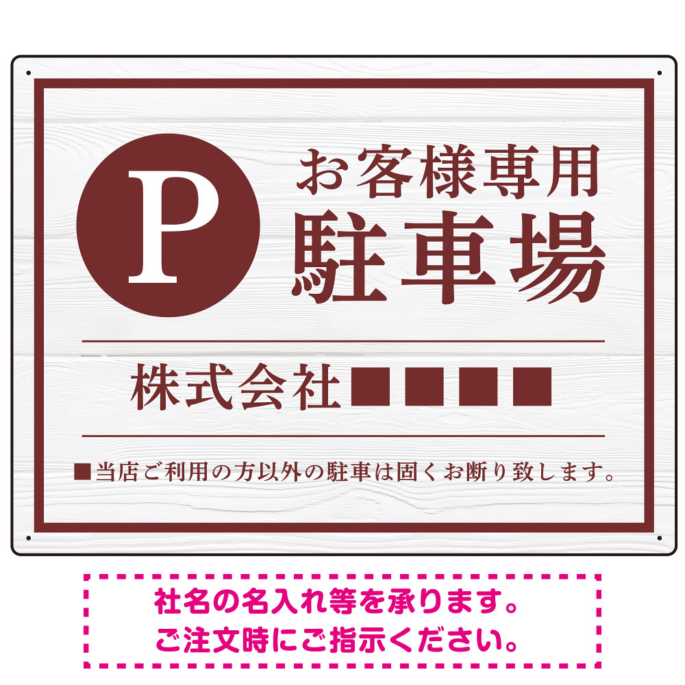 上品な木目調が映えるデザイン 駐車場向けデザインプレート看板 えんじ色 W600×H450 エコユニボード(SP-SMD759C-60x45U)