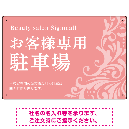 フローラル装飾が印象的な上品デザイン 駐車場向けデザインプレート看板 ピンク W450×H300 エコユニボード(SP-SMD760A-45x30U)