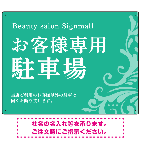 フローラル装飾が印象的な上品デザイン 駐車場向けデザインプレート看板 グリーン W600×H450 エコユニボード(SP-SMD760B-60x45U)