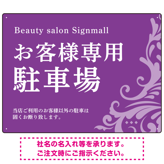 フローラル装飾が印象的な上品デザイン 駐車場向けデザインプレート看板 パープル W600×H450 エコユニボード(SP-SMD760C-60x45U)