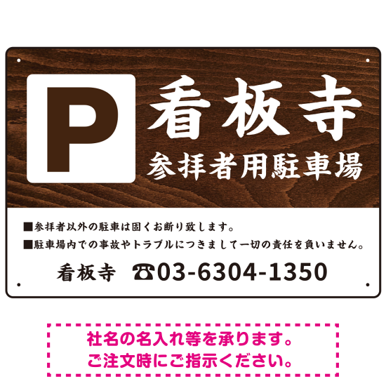 和の趣を感じる筆文字デザイン 駐車場向けデザインプレート看板 木目調 W450×H300 エコユニボード(SP-SMD761D-45x30U)