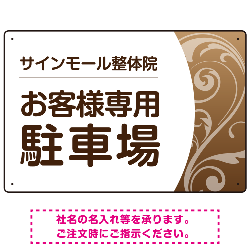- 柔らか曲線と背景色の調和が美しい 駐車場向けデザインプレート看板 ブラウン W450×H300 マグネットシート(SP-SMD764B-45x30M)