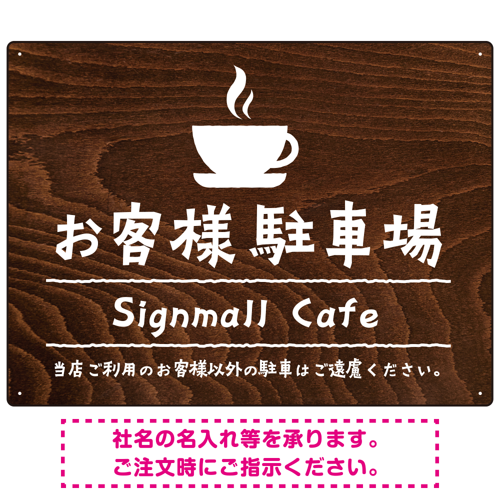 - 手描き風デザインが特徴的なナチュラルテイスト 駐車場向けデザインプレート看板 コーヒーカップ W600×H450 アルミ複合板(SP-SMD766B-60x45A)
