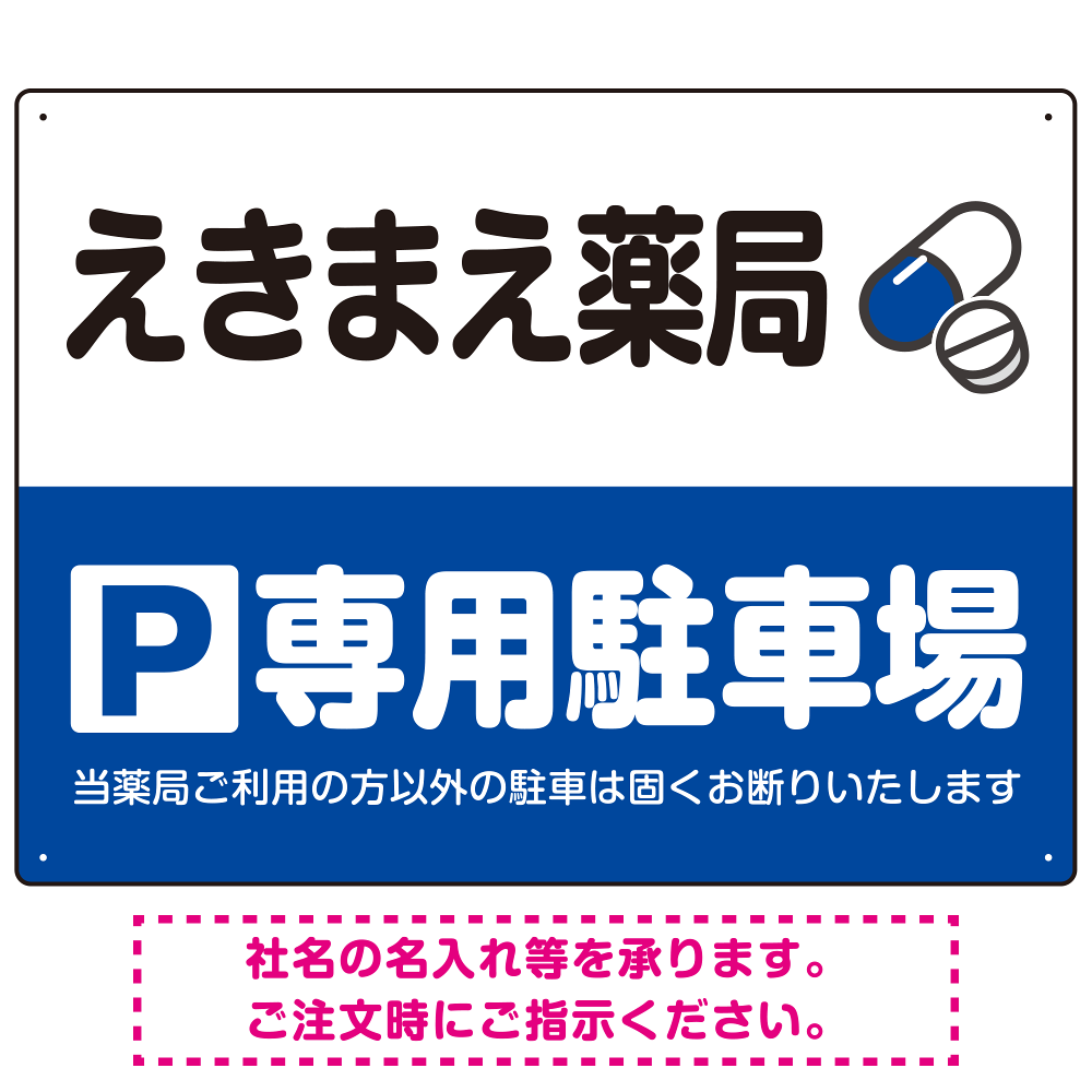 カラフルな薬剤モチーフが目を引くデザイン 駐車場向けデザインプレート看板 ブルー W600×H450 アルミ複合板(SP-SMD767A-60x45A)