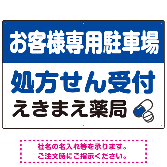 処方せん受付を明確に伝える薬局向けデザイン 駐車場向けデザインプレート看板 ブルー W900×H600 マグネットシート(SP-SMD769A-90x60M)
