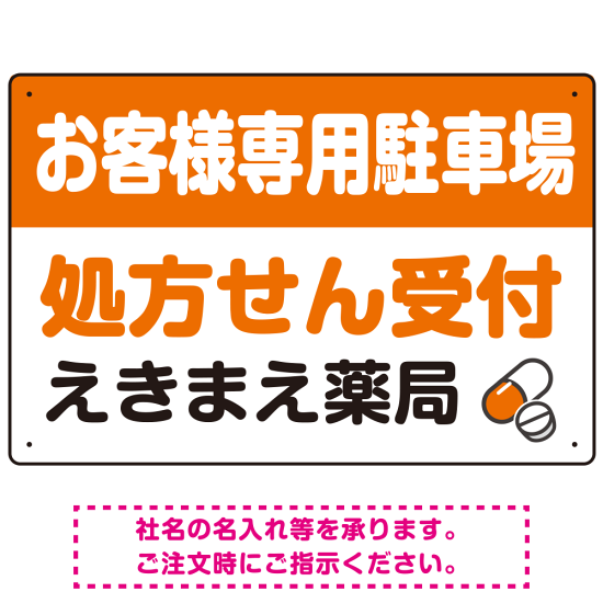- 処方せん受付を明確に伝える薬局向けデザイン 駐車場向けデザインプレート看板 オレンジ W450×H300 エコユニボード(SP-SMD769C-45x30U)