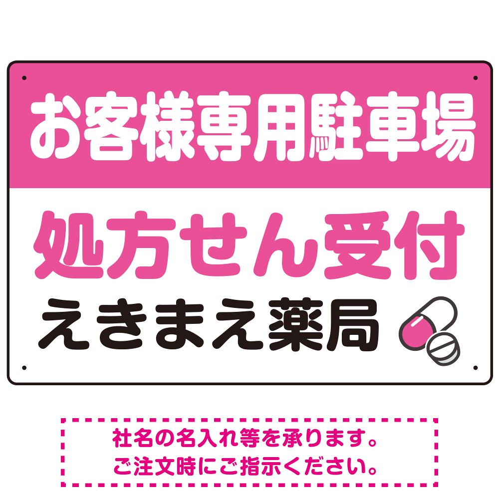 - 処方せん受付を明確に伝える薬局向けデザイン 駐車場向けデザインプレート看板 ピンク W450×H300 エコユニボード(SP-SMD769D-45x30U)