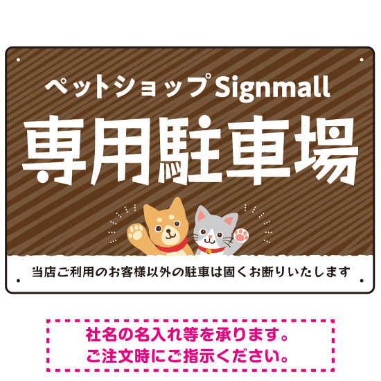 犬と猫のかわいいイラストがやさしく伝える駐車場用サイン
