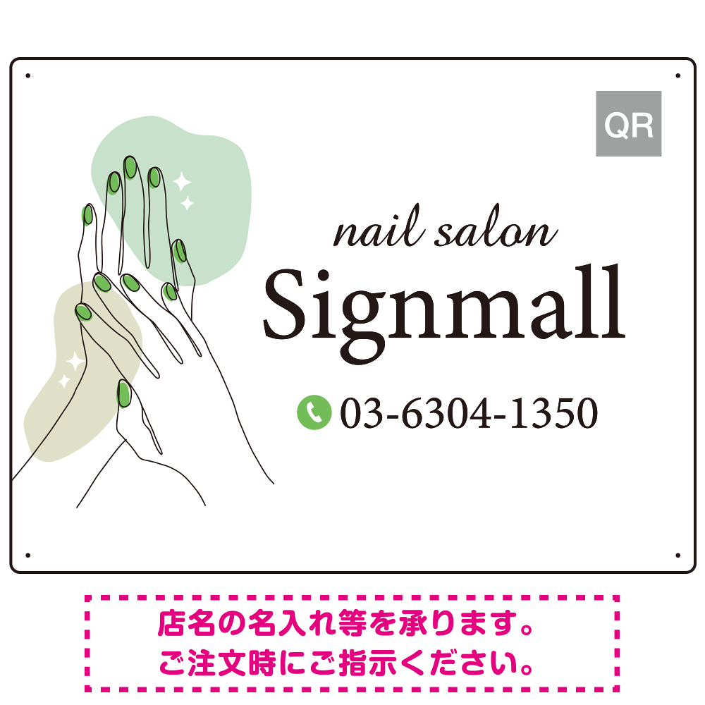清潔感と華やかさを兼ね備えた指先モチーフ ネイルサロン向けデザインプレート看板 グリーン W600×H450 エコユニボード(SP-SMD771D-60x45U)