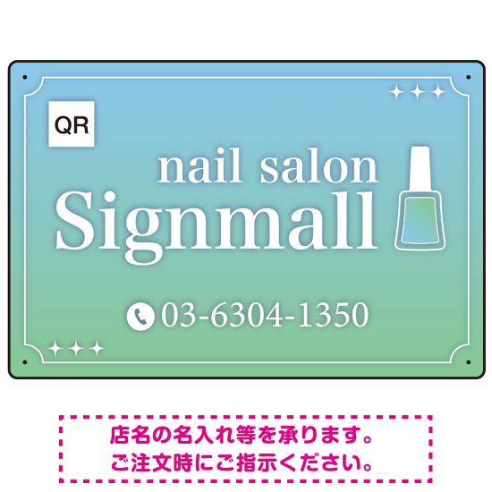 ネイルポリッシュモチーフがかわいいグラデーションデザイン ネイルサロン向けデザインプレート看板 ブルー W450×H300 エコユニボード(SP-SMD773B-45x30U)