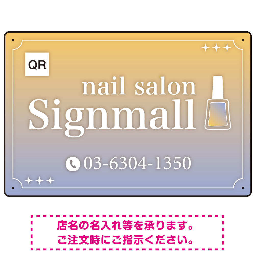 ネイルポリッシュモチーフがかわいいグラデーションデザイン ネイルサロン向けデザインプレート看板 イエロー W450×H300 エコユニボード(SP-SMD773C-45x30U)