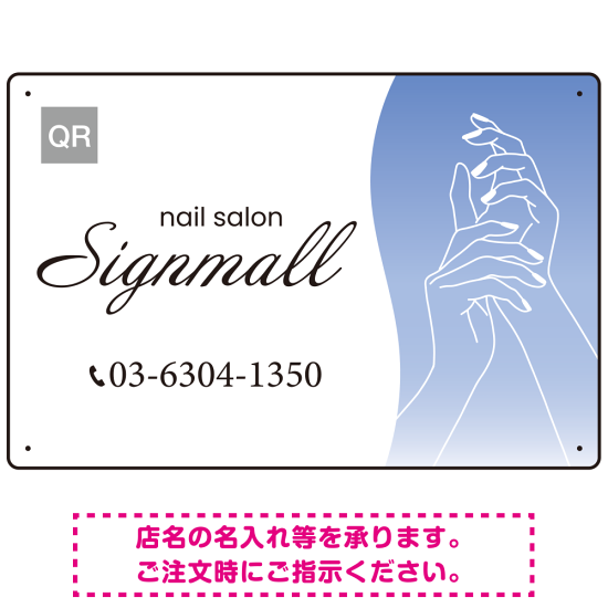 エレガントで上品な手描きラインが印象的なネイルサロン向けデザインプレート看板 ブルー W450×H300 エコユニボード(SP-SMD774C-45x30U)