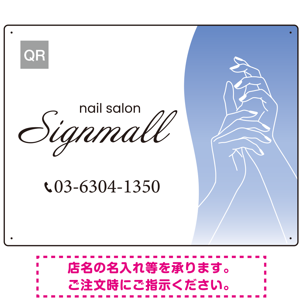 エレガントで上品な手描きラインが印象的なネイルサロン向けデザインプレート看板 ブルー W600×H450 エコユニボード(SP-SMD774C-60x45U)