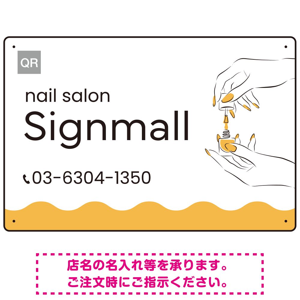 指先の彩りが映える手元の動作が印象的なネイルサロン用プレート看板 イエロー W450×H300 エコユニボード (SP-SMD775B-45x30U)