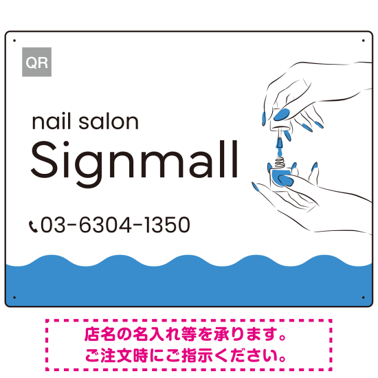 指先の彩りが映える手元の動作が印象的なネイルサロン用プレート看板 ブルー W600×H450 エコユニボード (SP-SMD775C-60x45U)