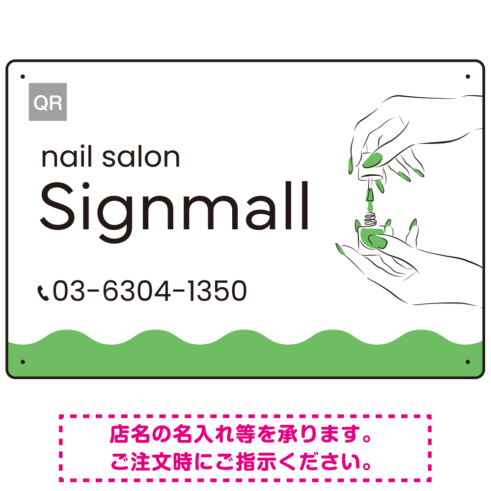 指先の彩りが映える手元の動作が印象的なネイルサロン用プレート看板 グリーン W450×H300 エコユニボード (SP-SMD775D-45x30U)