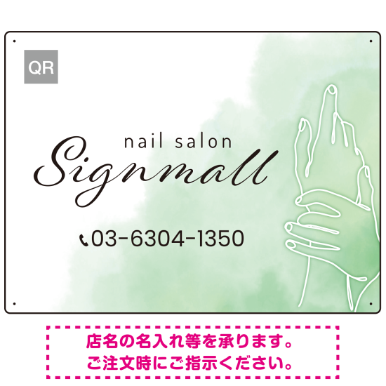 落ち着きと透明感を感じさせるネイルサロン向けデザイン看板 グリーン W600×H450 エコユニボード(SP-SMD776D-60x45U)