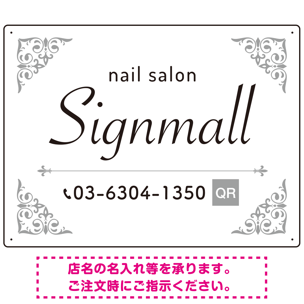 大人の空間に調和する高級感のあるネイルサロン用プレート看板 シルバー調 W600×H450 エコユニボード(SP-SMD777B-60x45U)