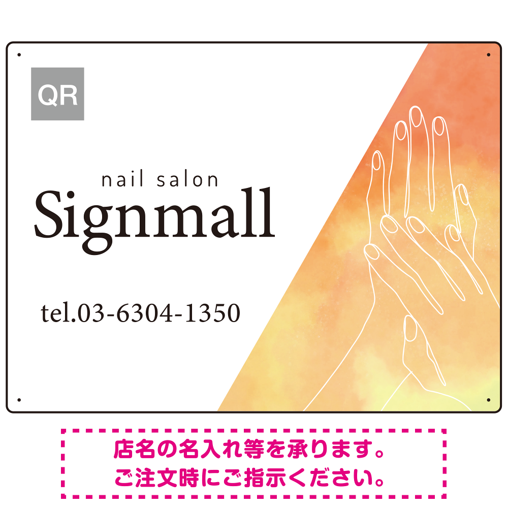 柔らかな水彩グラデーションとホワイトベースが際立つ ネイルサロン向けデザインプレート看板 イエロー W600×H450 エコユニボード(SP-SMD779B-60x45U)