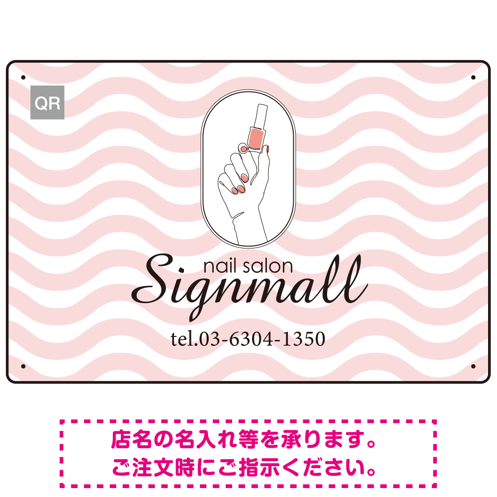 やさしさと清潔感を感じる波模様が印象的なネイルサロン向けデザインプレート看板