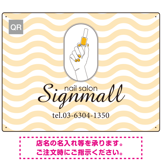 やわらかな波模様が印象的なネイルサロン向けプレート看板 イエロー W600×H450 エコユニボード(SP-SMD780B-60x45U)