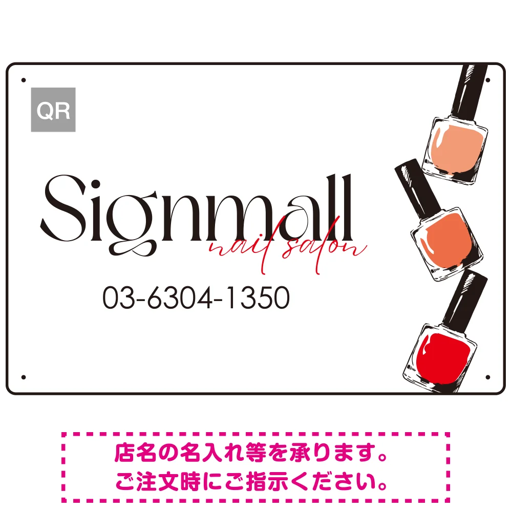 よくある質問:ネイルボトルがアクセントの上品デザイン ネイルサロン向けプレート看板 W450×H300 アルミ複合板(SP-SMD782-45x30A)