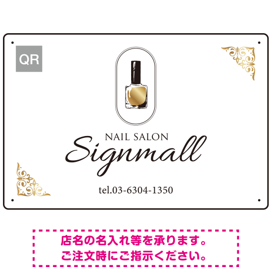 アンティーク調エレガンスなネイルサロン向けデザインプレート看板 ホワイト W450×H300 エコユニボード(SP-SMD783A-45x30U)