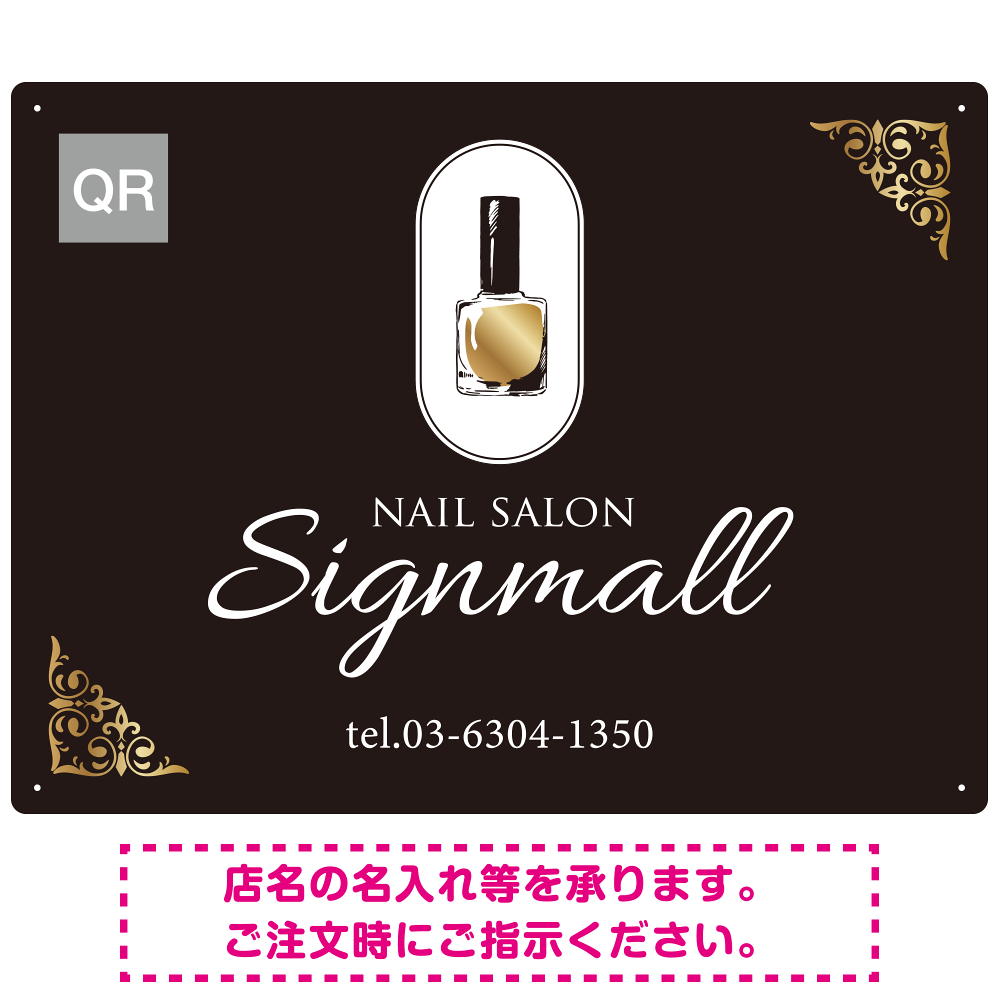 ゴールド装飾が印象的な店舗の品格を高めるネイルサロン向けデザインプレート看板