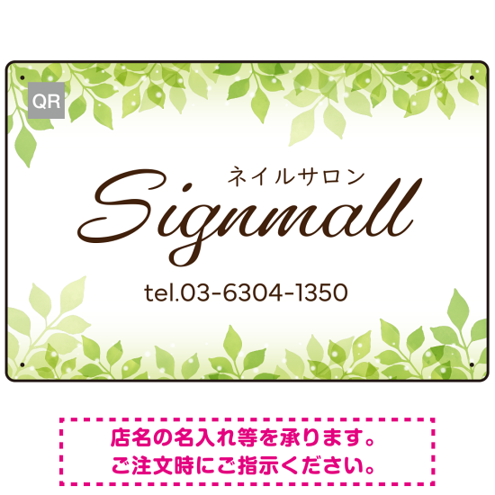 グリーンリーフで清潔感を演出するネイルサロン向けデザインプレート看板