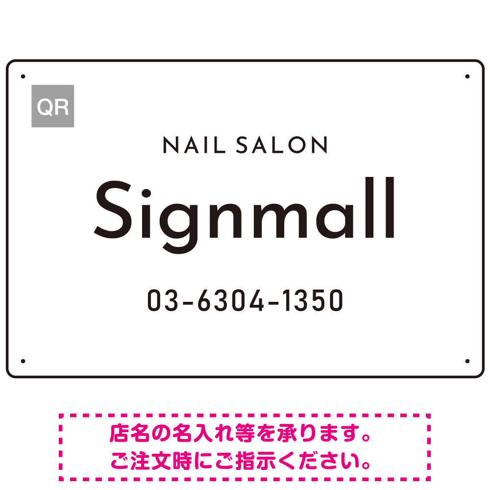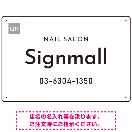 英字フォントが映える都会的デザイン ネイルサロン向けプレート看板 ホワイト W450×H300 エコユニボード(SP-SMD786A-45x30U)