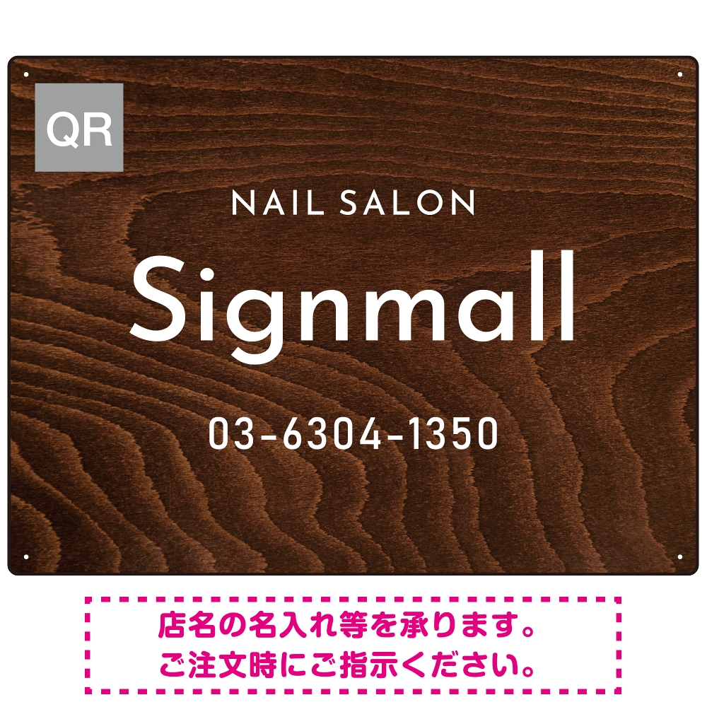 - ウッド調のデザインが印象的なネイルサロン向けのプレート看板です。