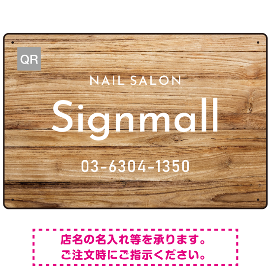 - ウッド調のデザインが印象的なネイルサロン向けのプレート看板です。