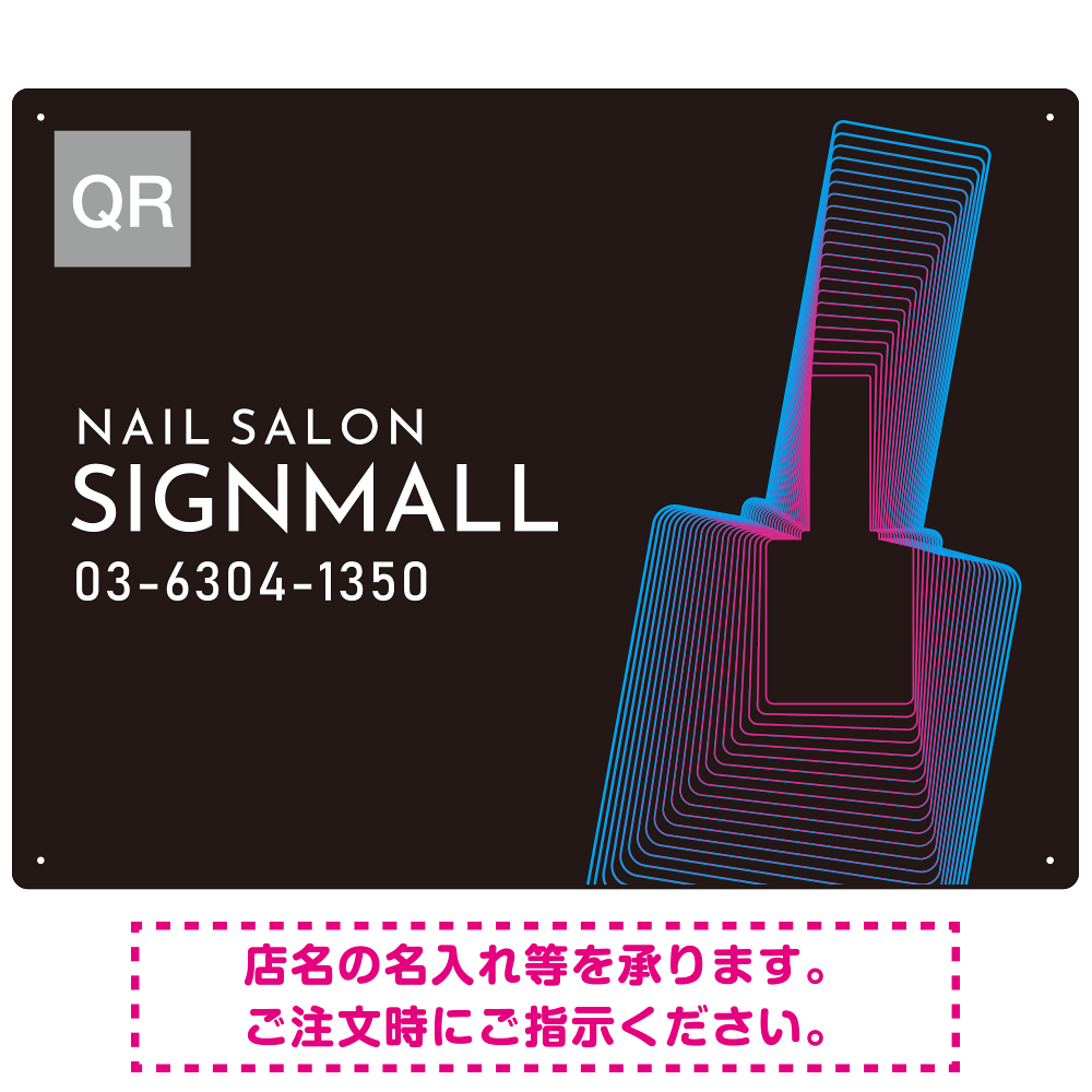 - ネイルボトルが印象的な個性派ネイルサロン向けデザインプレート看板 W600×H450 エコユニボード(SP-SMD788-60x45U)