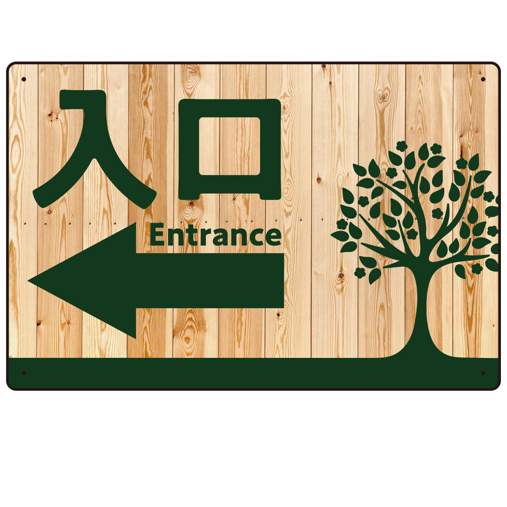 商品説明:ナチュラルウッド調案内板 オリジナルプレート看板 入口/左矢印 W450×H300 エコユニボード (SP-SMD789AL-45x30U)