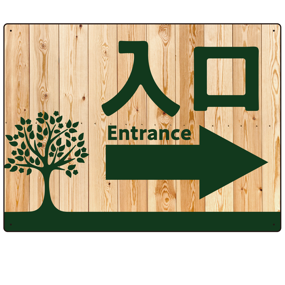 ナチュラルウッド調案内板 オリジナルプレート看板 入口/右矢印 W600×H450 エコユニボード (SP-SMD789AR-60x45U)