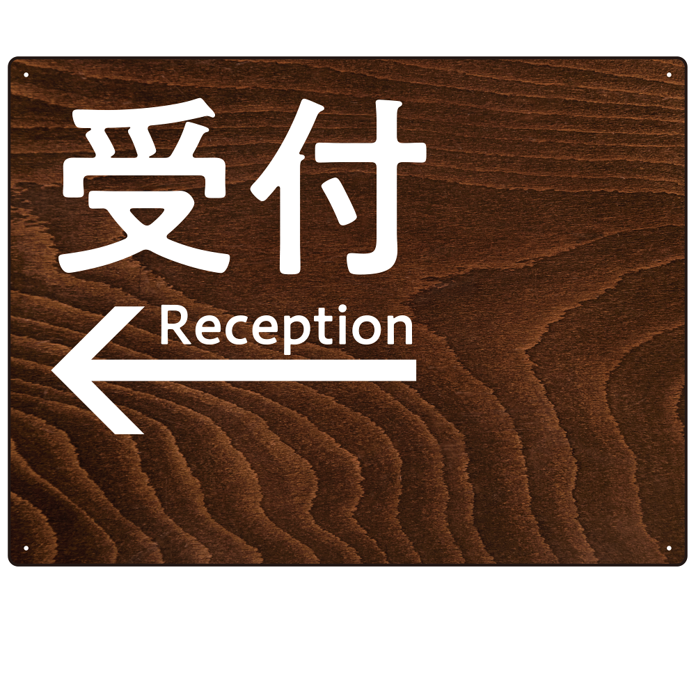 ダークウッド調 案内表示 オリジナルプレート看板 受付/左矢印 W600×H450 エコユニボード(SP-SMD791CL-60x45U)