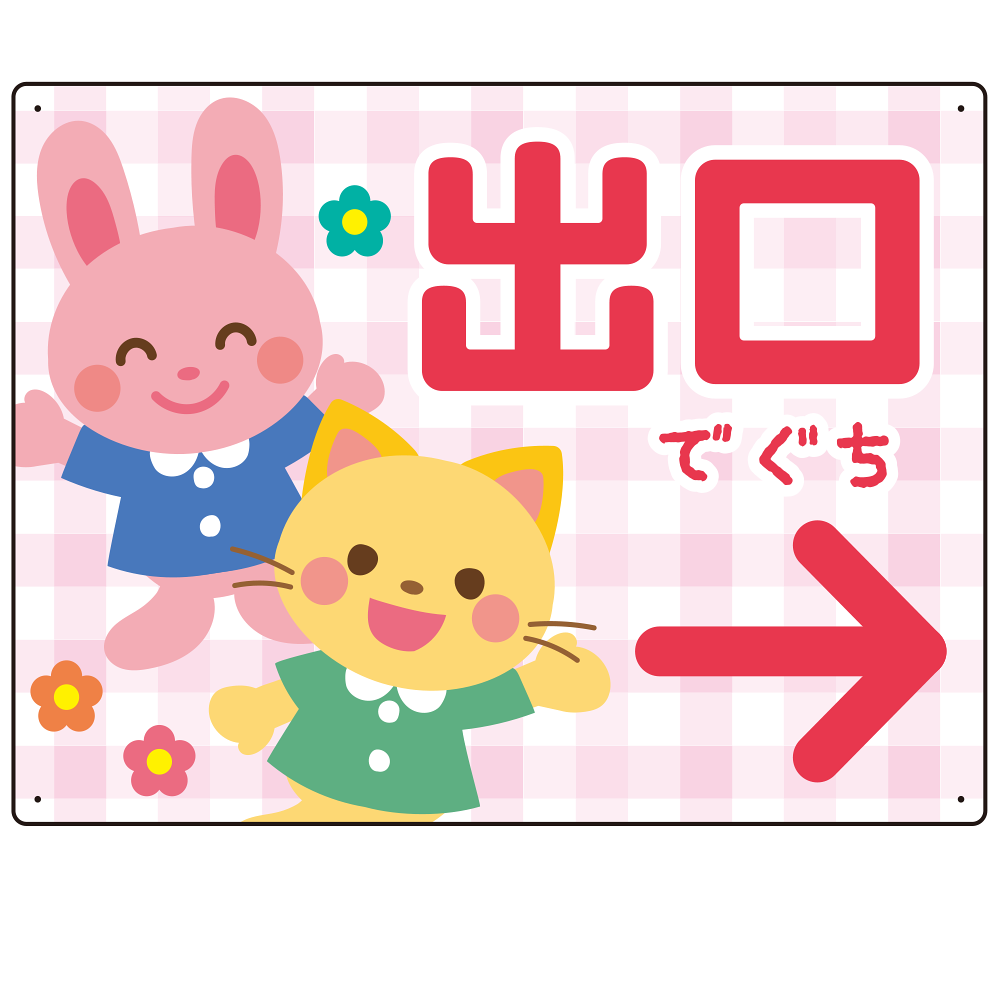 商品説明:キッズデザイン 出口 案内板 オリジナルプレート看板 出口/右矢印/ピンク W600×H450 エコユニボード(SP-SMD796AR-60x45U)