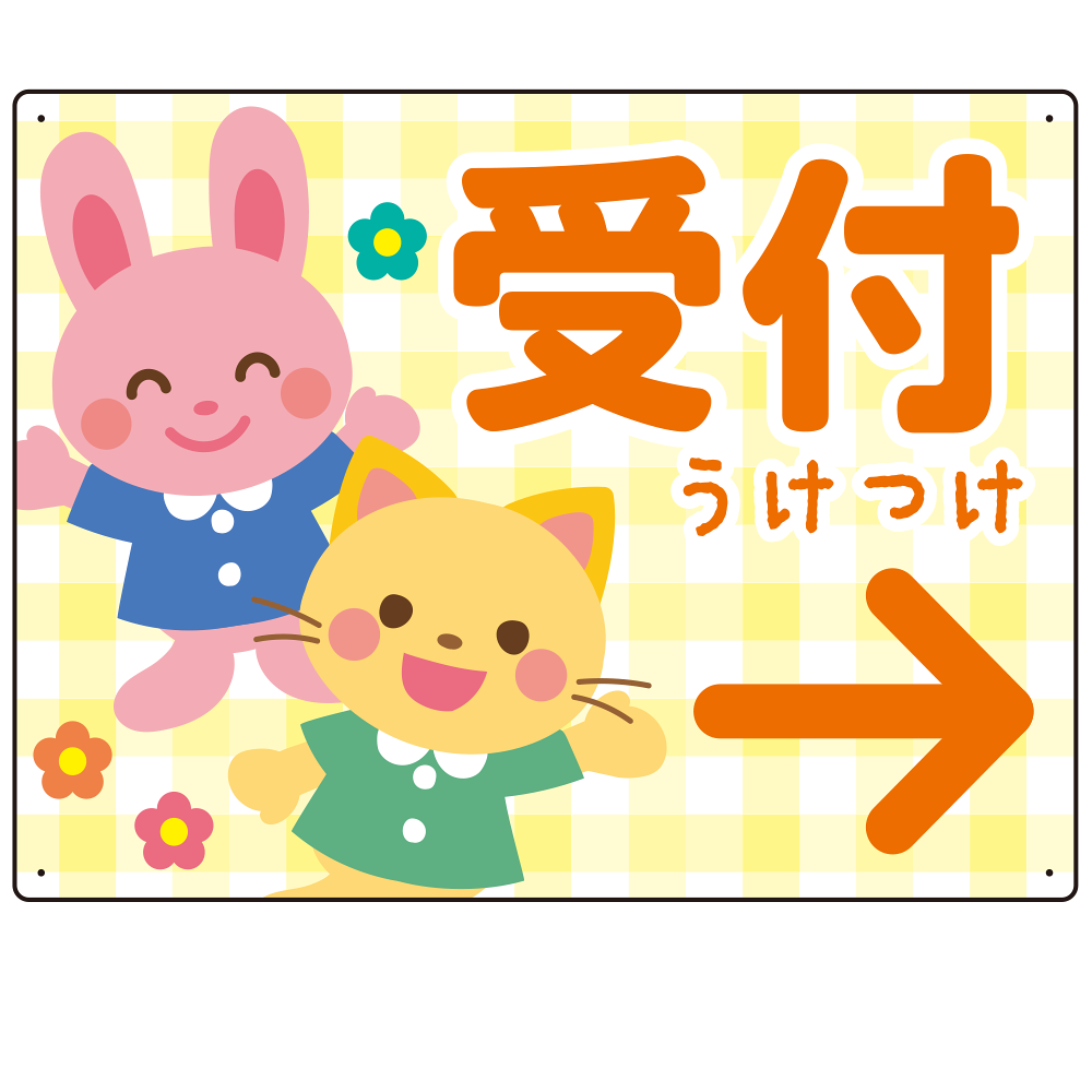 - やさしいチェック柄が親しみやすい印象を与え、ふりがなの「うけつけ」表記が小さなお子さまにもわかりやすいデザインとなっています。