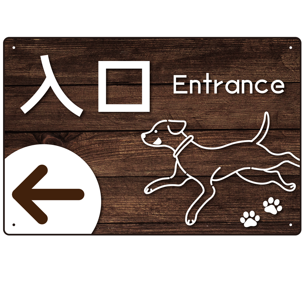 ペット施設向け 木目調案内板 オリジナルプレート看板 入口/左矢印 W450×H300 エコユニボード(SP-SMD798AL-45x30U)