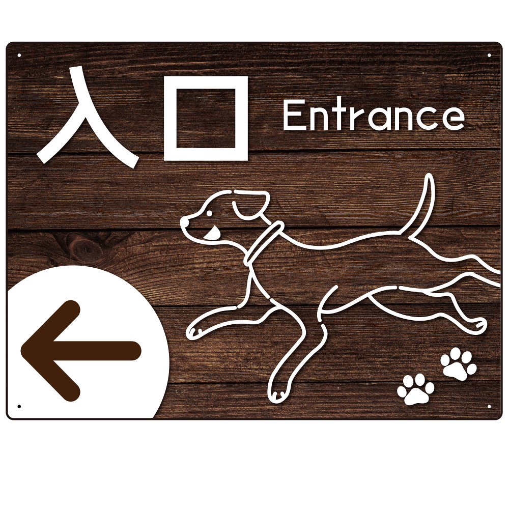ペット施設向け 木目調案内板 オリジナルプレート看板 入口/左矢印 W600×H450 エコユニボード(SP-SMD798AL-60x45U)