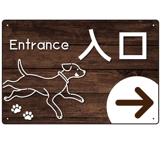 商品説明:ペット施設向け 木目調案内板 オリジナルプレート看板 入口/右矢印 W450×H300 エコユニボード(SP-SMD798AR-45x30U)
